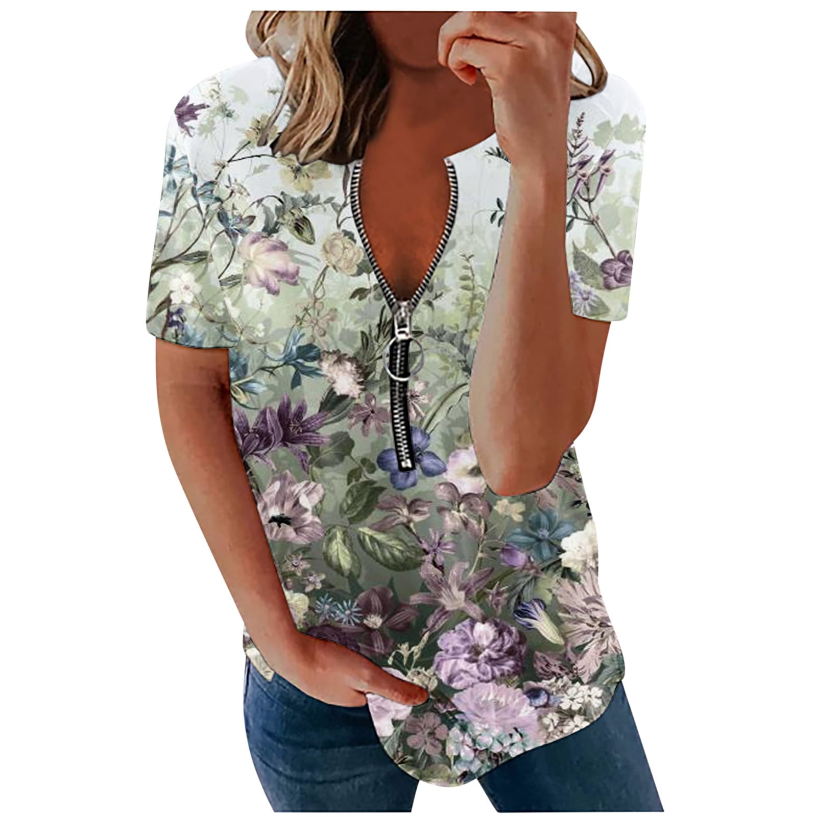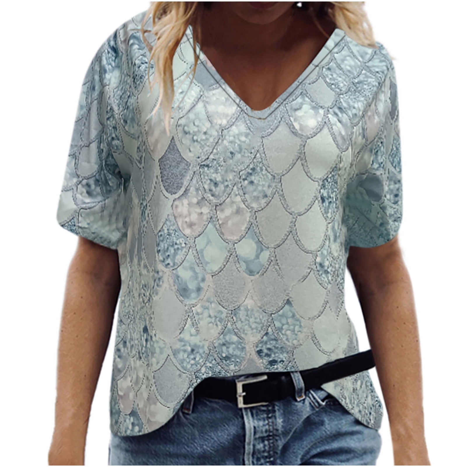 Womens Blouses Women Fashion Print V Neck T Shirt Short Sleeve Casual Tee Tops Blouse Loose Shirts For Women Light Blue L Walmart Com